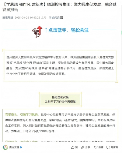 《嘉定党建》:【学思想 强作风 建新功】绿洲控股集团:聚力民生促发展,融合赋能显担当